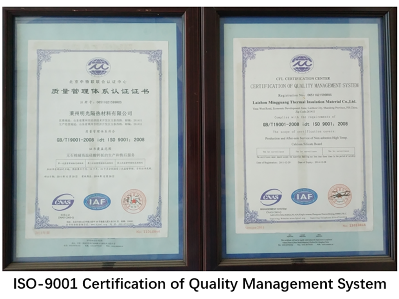 萊州明光隔熱材料有限公司成立于2000年,是國內(nèi)先進的高溫型硅酸鈣產(chǎn)品生產(chǎn)廠家之一。公司研發(fā)能力強,生產(chǎn)設備先進,年產(chǎn)能力突破20000立方米,是一家集研發(fā)、生產(chǎn)、服務為一體的技術(shù)型企業(yè)。明光注重產(chǎn)品質(zhì)量和服務,誠信經(jīng)營,多年來始終按國際質(zhì)量認證體系標準嚴格生產(chǎn),并通過了ISO9001質(zhì)量管理體系認證等國際標準,保證了產(chǎn)品和服務的穩(wěn)步提高。本公司的隔熱材料產(chǎn)品廣泛用于冶金、玻璃、陶瓷、石化、機械、鍋爐、電爐、鋼鐵、水泥、石灰等行業(yè),是國家重點工程的“首選產(chǎn)品”...